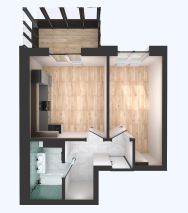 Площадь комнаты позволяет зонировать ее на спальную и гостевую зоны. В проекте функциональная прихожая, чтобы вам было удобно хранить свои вещи.