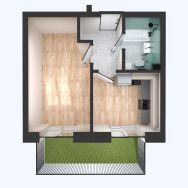 Площадь комнаты позволяет зонировать ее на спальную и гостевую зоны. В проекте функциональная прихожая, чтобы вам было удобно хранить свои вещи.