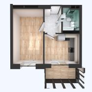 Площадь комнаты позволяет зонировать ее на спальную и гостевую зоны. В проекте функциональная прихожая, чтобы вам было удобно хранить свои вещи.