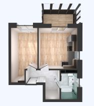 Площадь комнаты позволяет зонировать ее на спальную и гостевую зоны. В проекте функциональная прихожая, чтобы вам было удобно хранить свои вещи.