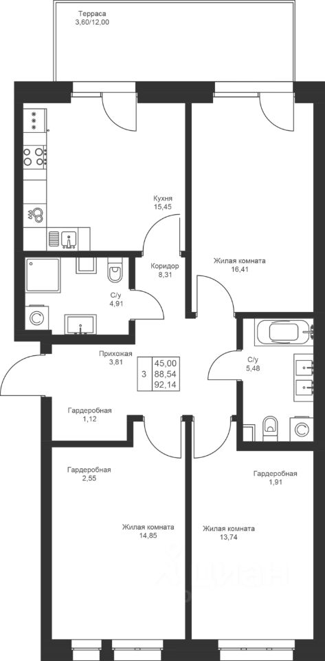 Комфортная 3-комнатная квартира с отдельной кухней и двумя санузлами. В квартире есть просторный балкон, где вы сможете организовать уютное место для отдыха.