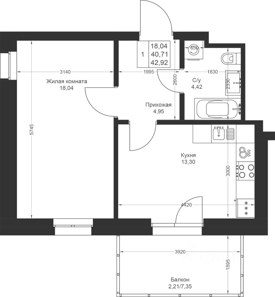 Уютная 1-комнатная квартира с отдельной кухней и выходом на балкон. Здесь можно организовать рабочее место или дополнительное пространство для отдыха.