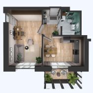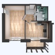 Площадь комнаты позволяет зонировать ее на спальную и гостевую зоны. В проекте функциональная прихожая, чтобы вам было удобно хранить свои вещи.