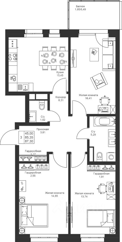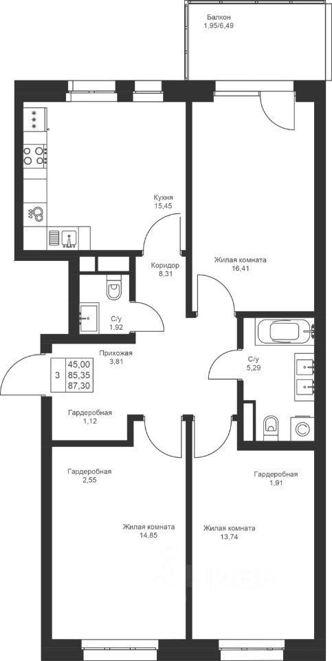 Комфортная 3-комнатная квартира с отдельной кухней и двумя санузлами. В квартире есть просторный балкон, где вы сможете организовать уютное место для отдыха.