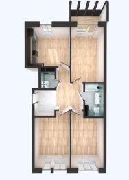 В проекте 3 комнаты для личного пространства домочадцев. Окна выходят на разные стороны дома, благодаря чему в помещениях будет больше света. В прихожей есть место для шкафа-купе, где будет удобно хранить все свои вещи.