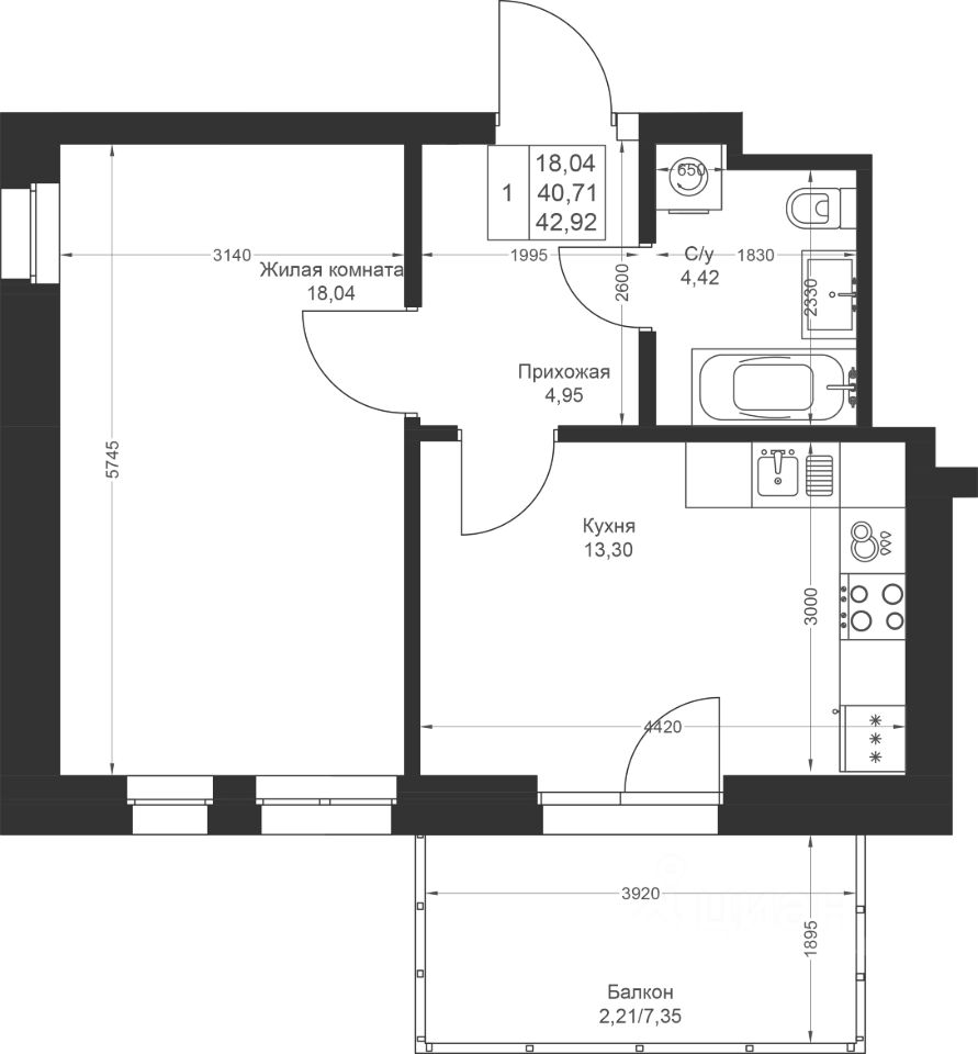 Уютная 1-комнатная квартира с отдельной кухней и выходом на балкон. Здесь можно организовать рабочее место или дополнительное пространство для отдыха.