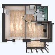 Площадь комнаты позволяет зонировать ее на спальную и гостевую зоны. В проекте функциональная прихожая, чтобы вам было удобно хранить свои вещи.