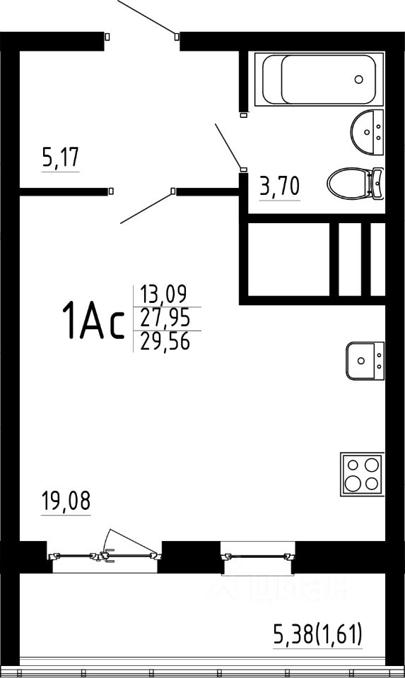 Продается 1комнатная квартира 378 общей площадью: 29.56 кв.м. на 13 этаже в 6 секции 14 этажного дома.