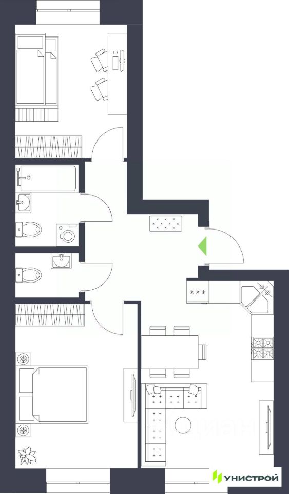 Бульвар, приватные дворы, комфортная переменная этажность, стильные холлы. В проекте представлено большое разнообразие планировочных решений: студии, европланировки и полноценные 1-, 2-, 3-комнатные. Для ценителей частных пространств мы подготовили миксы загородных домов и городских форматов: квартиры с личным входом с улицы, коллекционные варианты с террасами, а также мастер-спальни с ванными, гардеробными и эксклюзивные варианты на последних этажах с видом на зелёные окрестности района.
