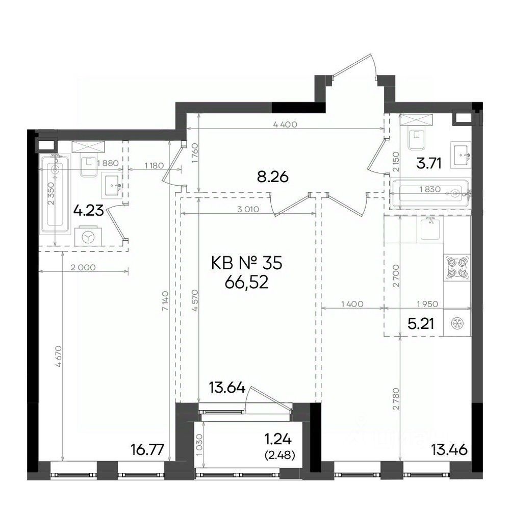 Общая площадь66,52 м²