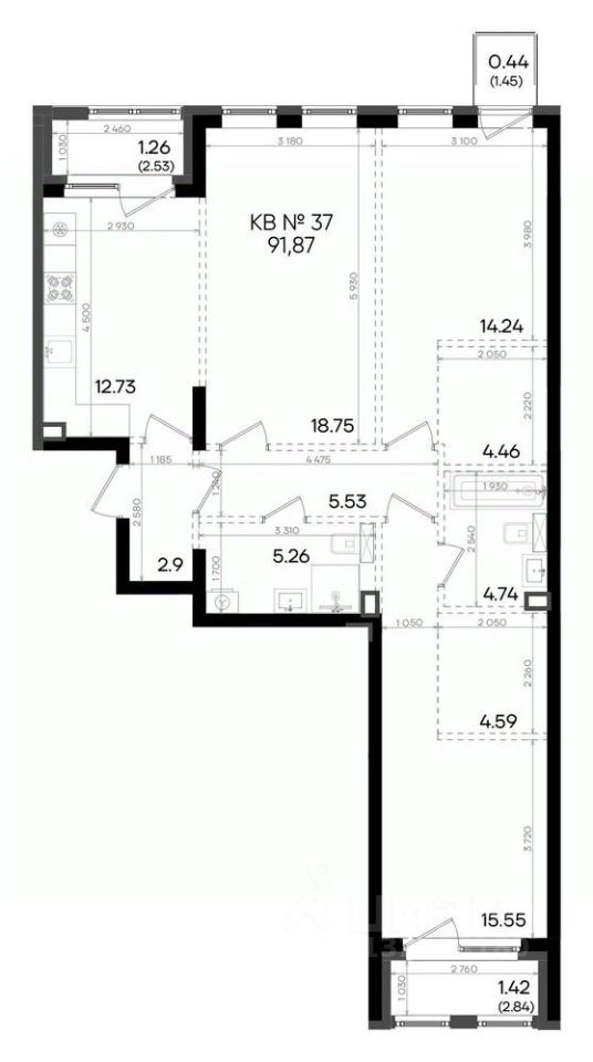 Общая площадь91,87 м²