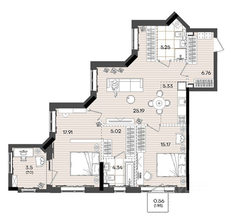 Жилая площадь58,3 м²