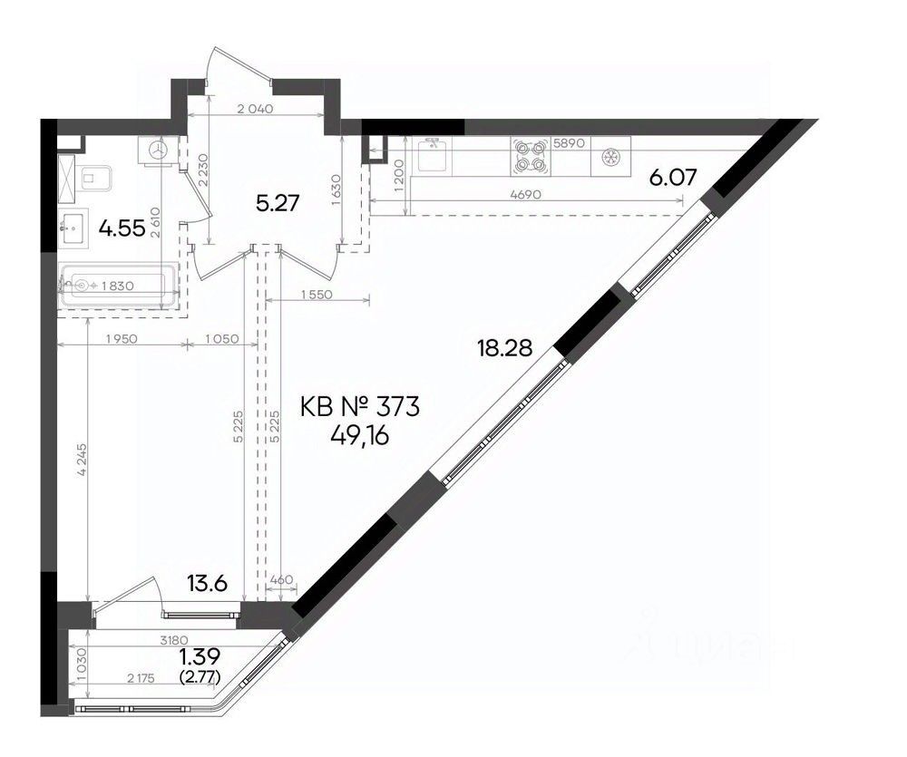 Общая площадь49,16 м²
