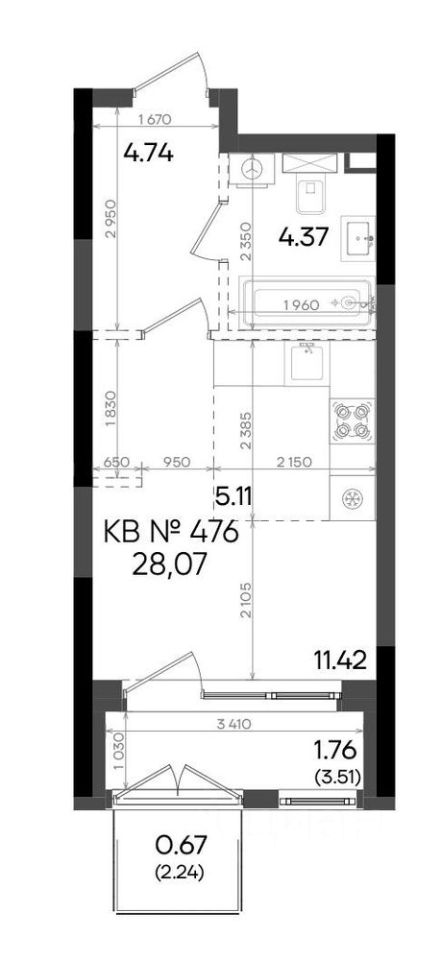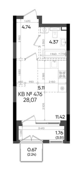 Общая площадь28,07 м²