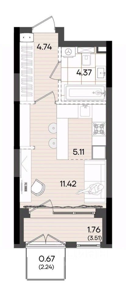 Жилая площадь11,4 м²