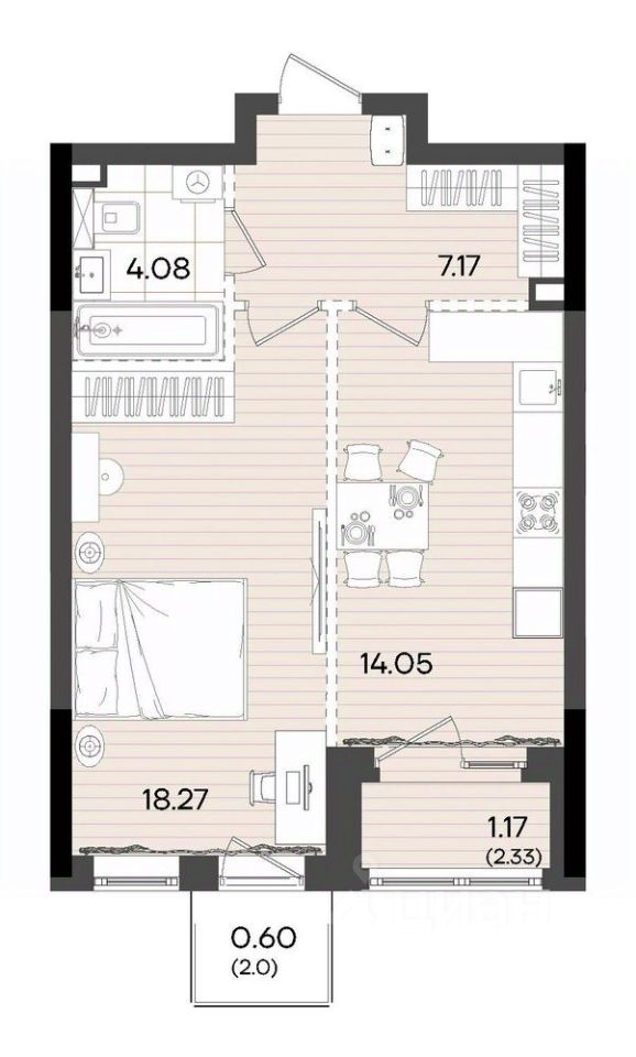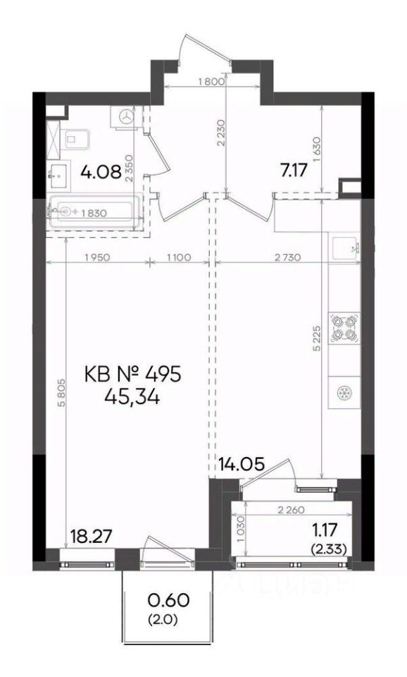 Жилая площадь18,3 м²
