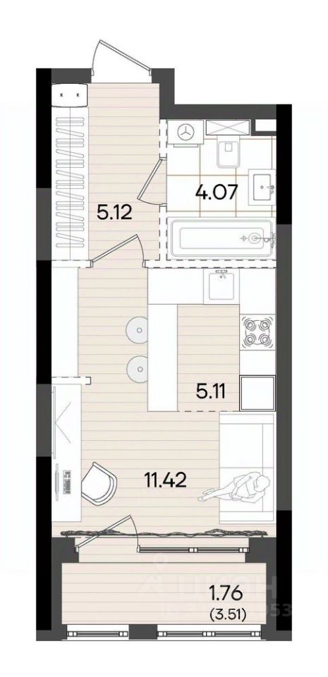 Жилая площадь11,4 м²