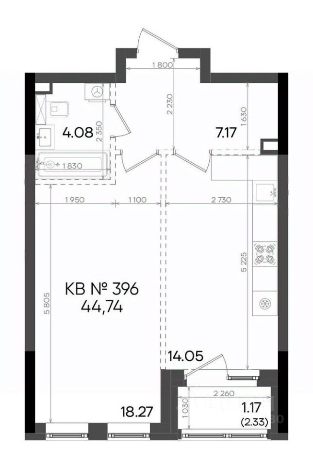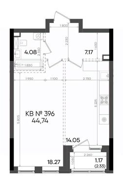 Общая площадь44,74 м²