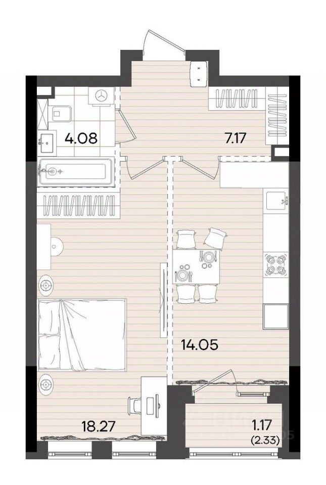 Жилая площадь18,3 м²