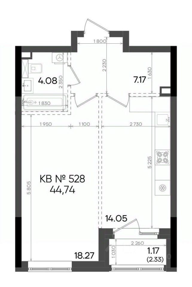Общая площадь44,74 м²