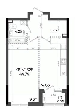 44,74 м²