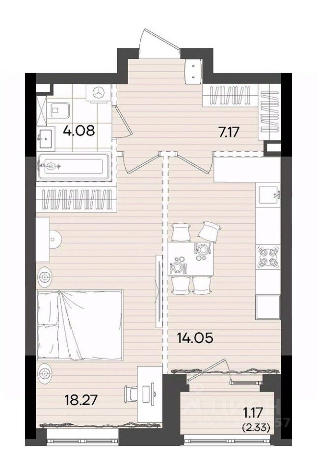 Жилая площадь18,3 м²