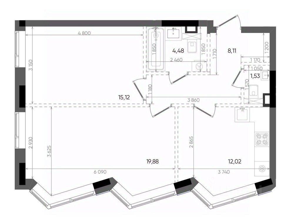 Общая площадь61,14 м²