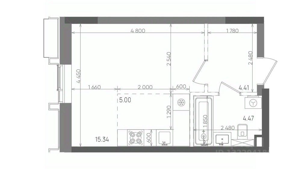 Жилая площадь15,3 м²