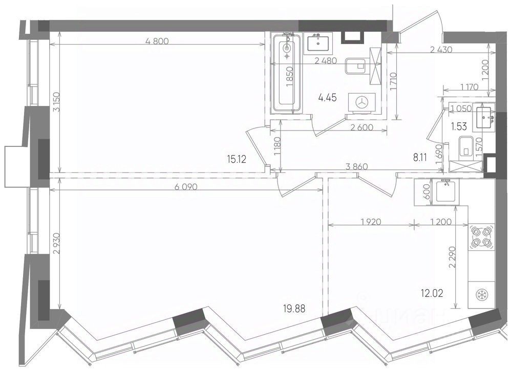 Общая площадь61,11 м²