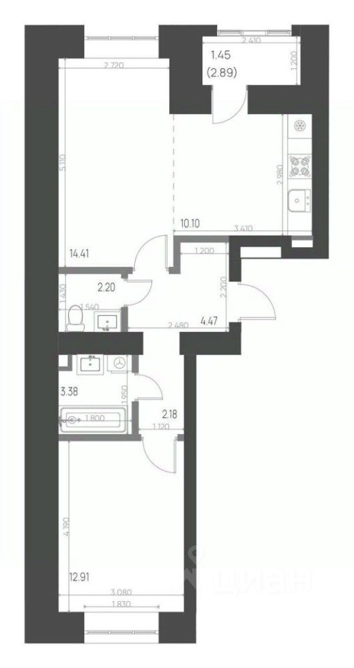 Общая площадь51,1 м²