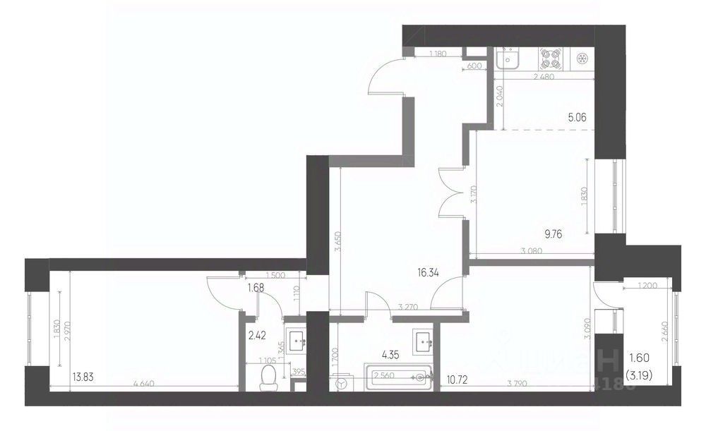 Общая площадь65,76 м²