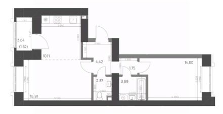 Общая площадь53,77 м²