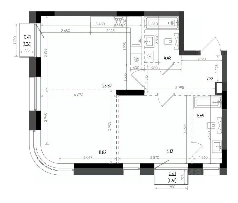 Общая площадь69,75 м²