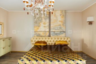 В спальне оригинальные камни "Оникс" с подсветкой.