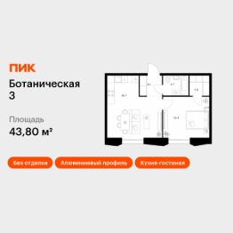 Продаётся 1-комн. квартира площадью 43,8 кв.м на 3 этаже 15 этажного дома (Корпус 2, Секция 9) проекта ПИК Ботаническая 3. Светлый просторный подъезд на уровне земли, функциональная планировка, большие окна, без отделки.