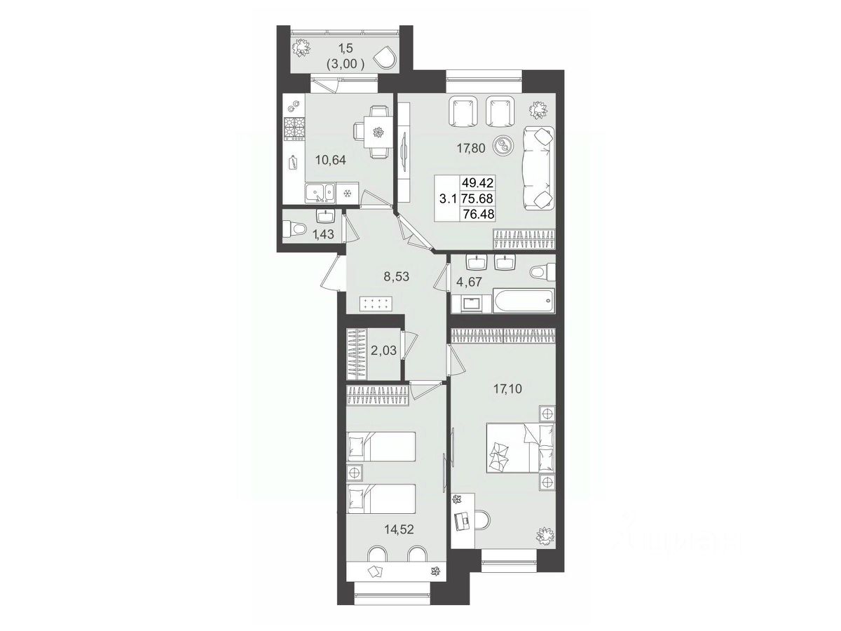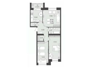 Продаётся 3-комнатная квартира 14 в доме 2 общей площадью 76.48 кв.м