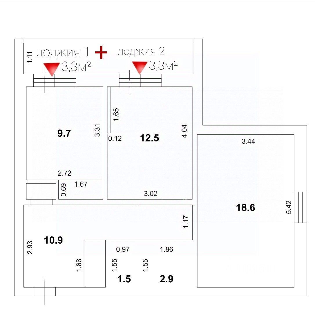 Двухкомнатная 56,2 м²+2 лоджии в престижной части района, 8мин до Кремля.