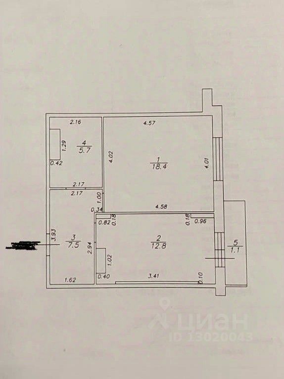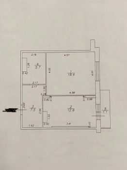 Большая гостиная 18.4 кв. м, кухня 12.4, большой сан. узел 5.7 кв. м