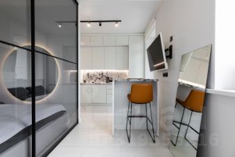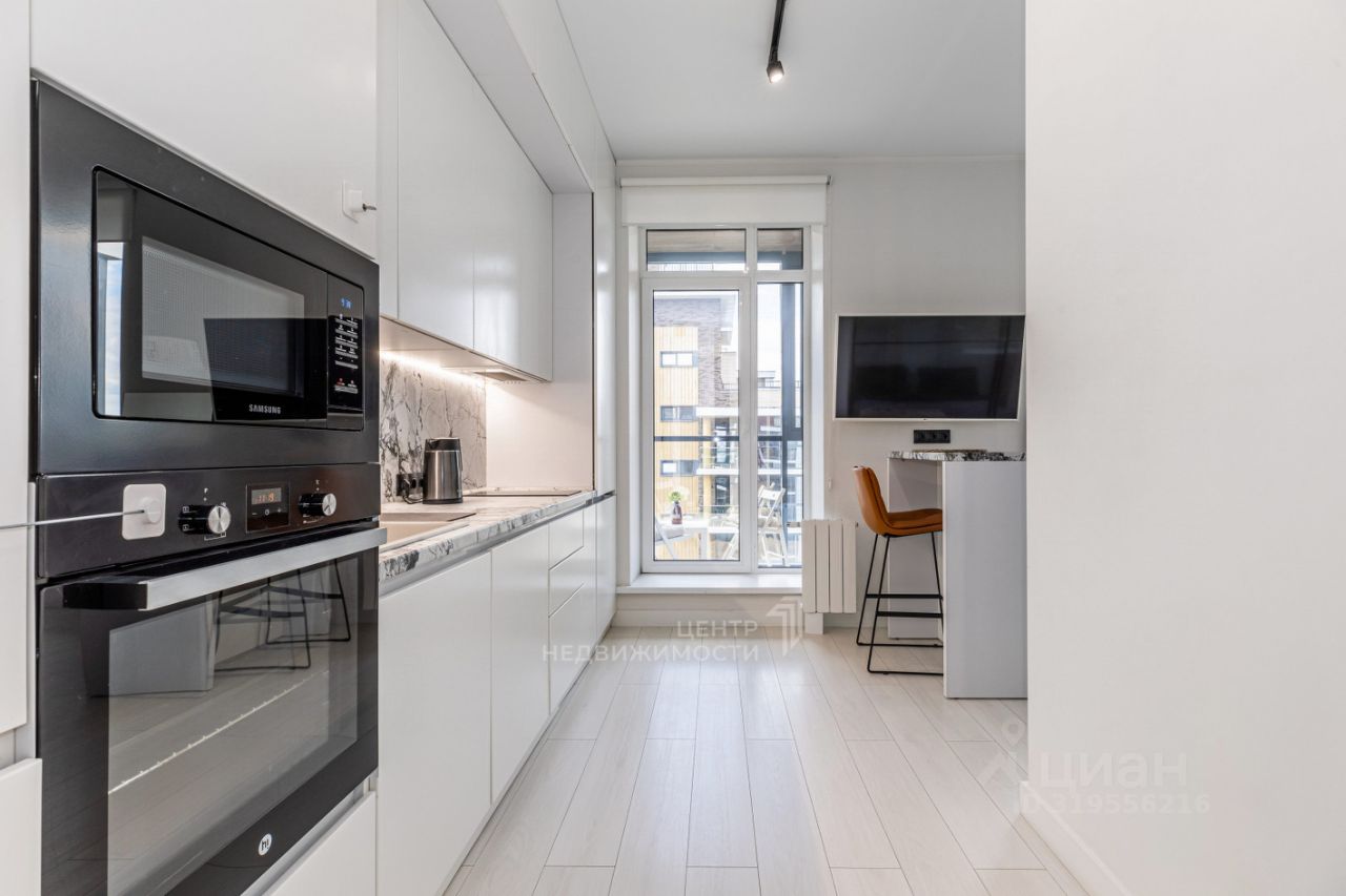 - Площадь: Просторная однокомнатная квартира с грамотно зонированным пространством: спальня и кухня-гостиная.