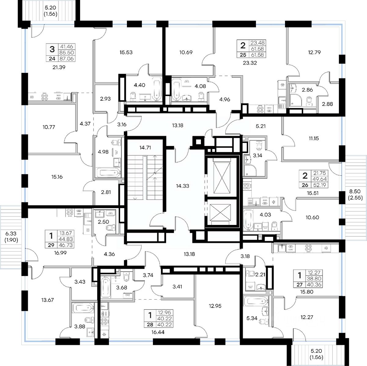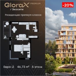 Продается 1-комн. квартира на 5-м этаже в строящемся проекте премиум-класса GloraX Premium Экосити. Общая площадь лота составляет 46,73 кв. м, из которых 13,67 кв. м отведено под жилую и 16,99 кв. м под кухонную зону. Номер квартиры - 29