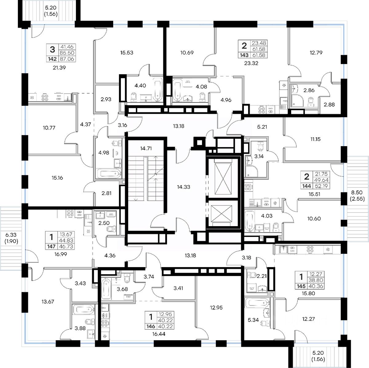 Продается 2-комн. квартира на 5-м этаже в строящемся проекте премиум-класса GloraX Premium Экосити. Общая площадь лота составляет 52,19 кв. м, из которых 21,75 кв. м отведено под жилую и 15,51 кв. м под кухонную зону. Номер квартиры - 144