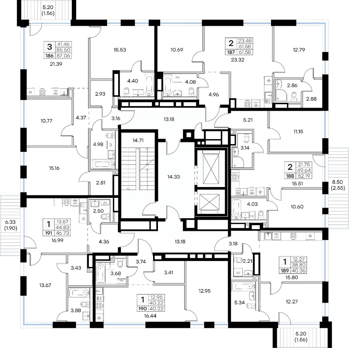 Продается 2-комн. квартира на 5-м этаже в строящемся проекте премиум-класса GloraX Premium Экосити. Общая площадь лота составляет 61,58 кв. м, из которых 23,48 кв. м отведено под жилую и 23,32 кв. м под кухонную зону. Номер квартиры - 187
