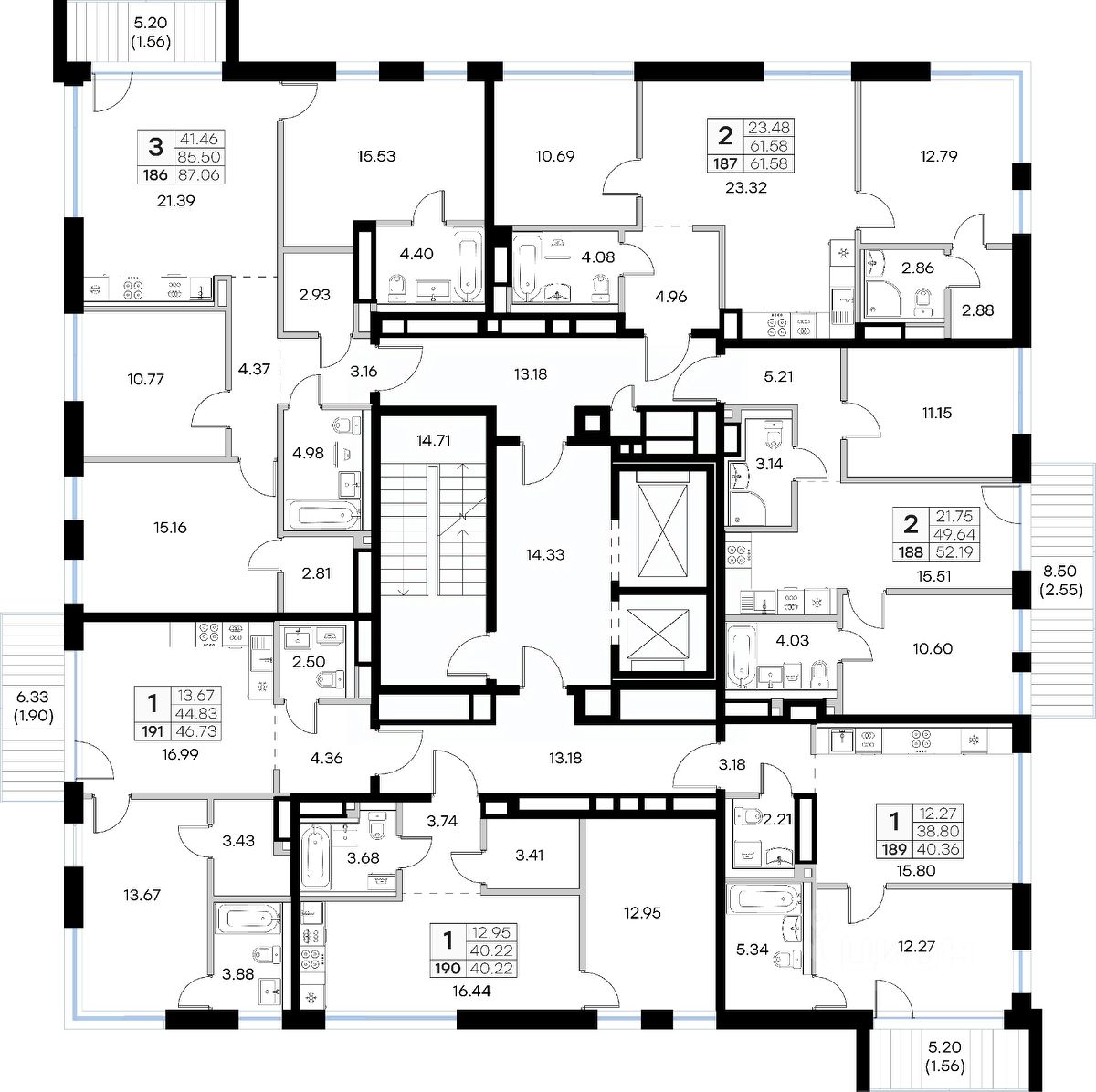 Продается 2-комн. квартира на 5-м этаже в строящемся проекте премиум-класса GloraX Premium Экосити. Общая площадь лота составляет 52,19 кв. м, из которых 21,75 кв. м отведено под жилую и 15,51 кв. м под кухонную зону. Номер квартиры - 188