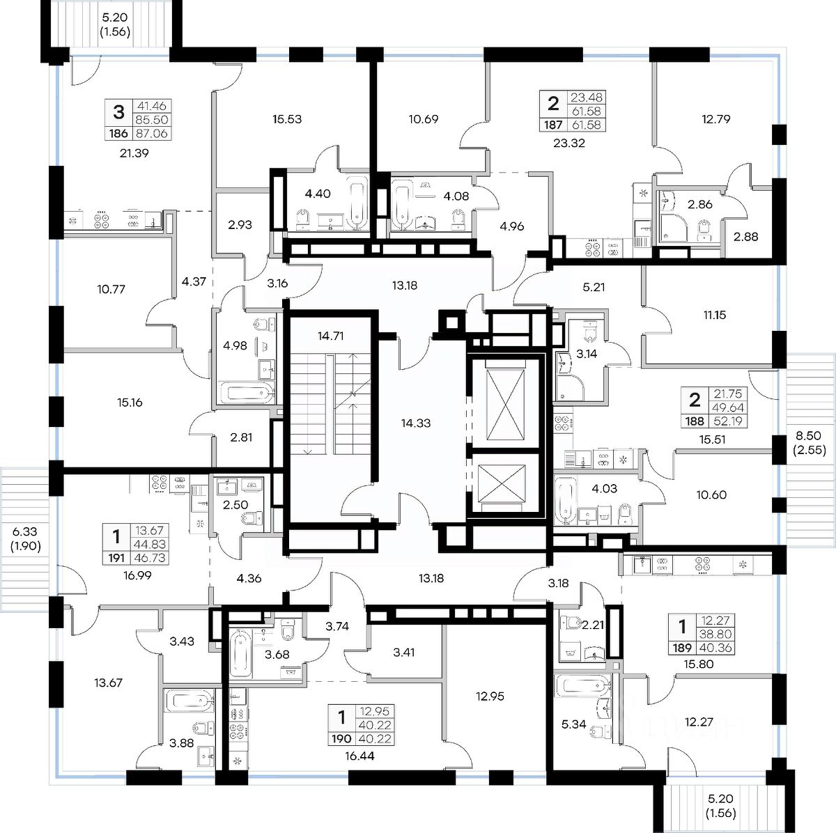 Продается 1-комн. квартира на 5-м этаже в строящемся проекте премиум-класса GloraX Premium Экосити. Общая площадь лота составляет 40,22 кв. м, из которых 12,95 кв. м отведено под жилую и 16,44 кв. м под кухонную зону. Номер квартиры - 190
