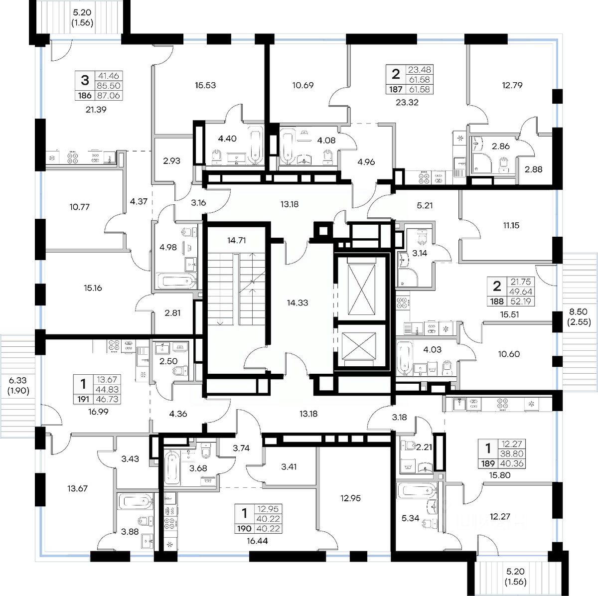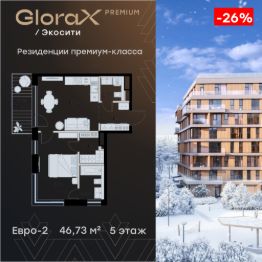 Продается 1-комн. квартира на 5-м этаже в строящемся проекте премиум-класса GloraX Premium Экосити. Общая площадь лота составляет 46,73 кв. м, из которых 13,67 кв. м отведено под жилую и 16,99 кв. м под кухонную зону. Номер квартиры - 191
