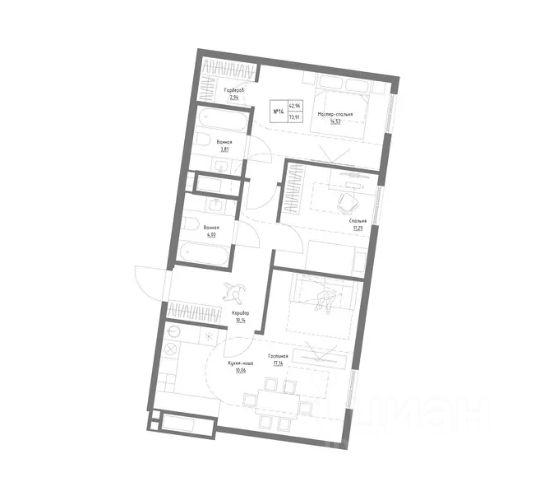 Продаётся 3-комнатная квартира в строящемся доме (Корпус 1), срок сдачи: III-кв. 2026, общей площадью 73.91 кв.м., на 4 этаже. Новый жилой комплекс "по ул. С.Садыковой" от застройщика "СЗ Резиденция на Сары Садыковой" расположен по адресу: Россия, Республика Татарстан, Казань, улица Сары Садыковой