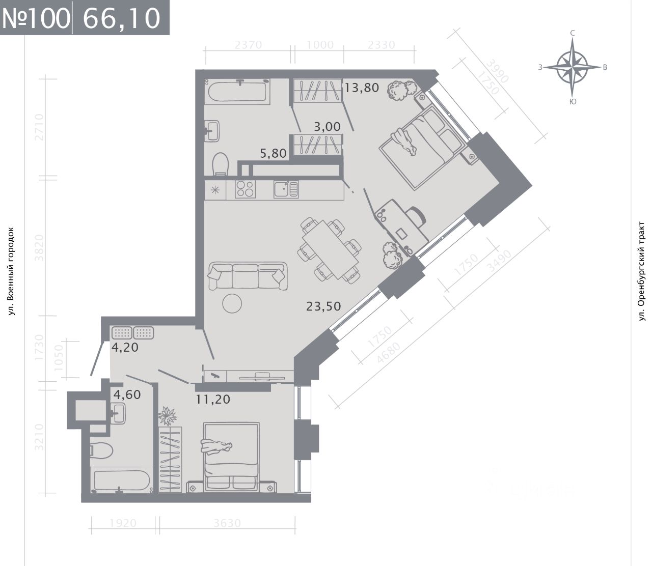 Продаётся 2-комнатная квартира в строящемся доме (Корпус 2 (2 этап)), срок сдачи: IV-кв. 2028, общей площадью 66.1 кв.м., на 13 этаже. Новый жилой комплекс "Оригана" от застройщика "КамаСтройИнвест" расположен по адресу: Россия, Республика Татарстан, Казань, улица Оренбургский Тракт