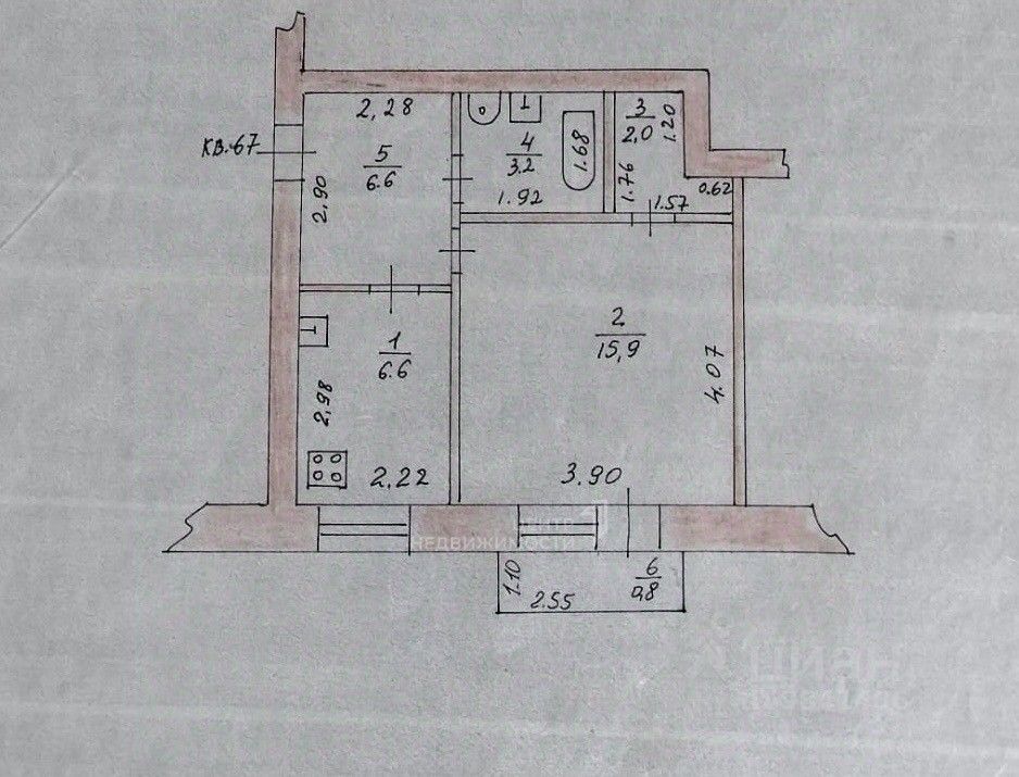Арт. 108506278 Уютная квартира 35.1 м² в центре Казани!