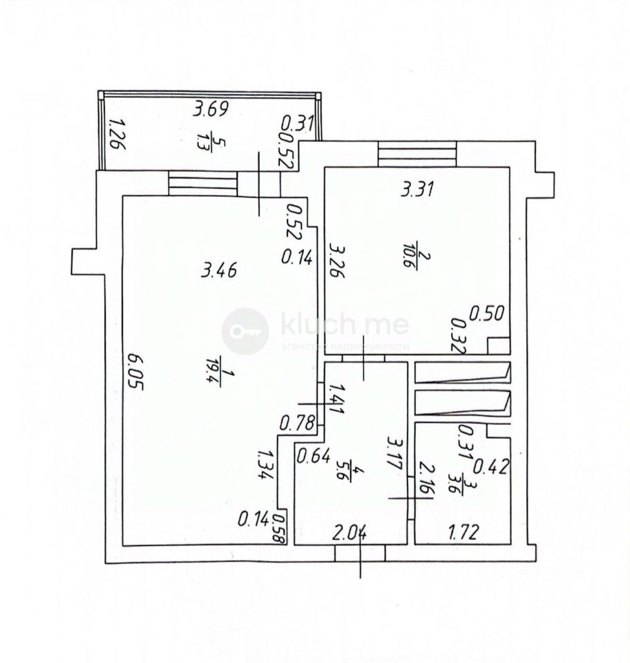 Общая площадь 39,2 м2 ( с учетом застекленной и обшитой лоджии), изолированная комната 19,4 м2, кухня 10,6 м2.