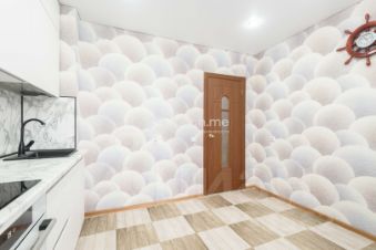 В квартире выполнен евроремонт: на полу в прихожей и комнате новый ламинат, стильные обои, натяжной потолок, на полу на кухне плитка. Лоджия полностью обшита вагонкой.